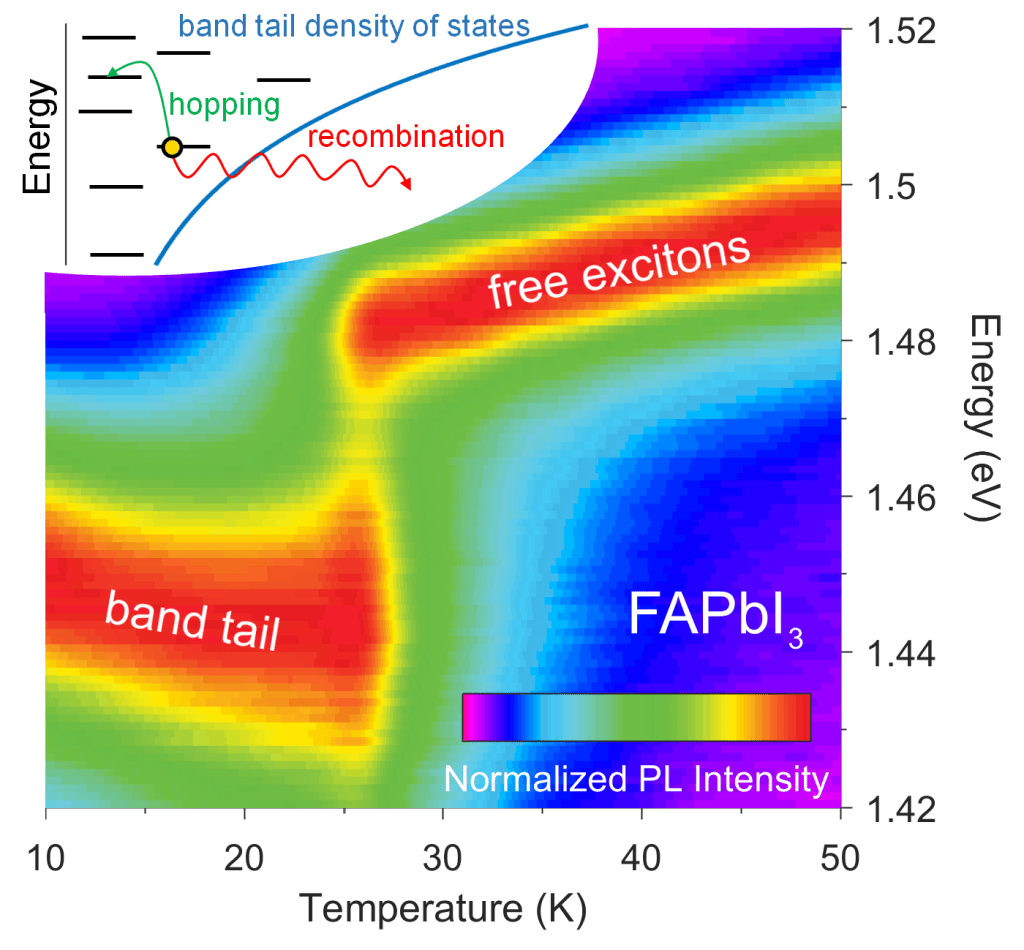 - A. D. Wright, R. L. Milot, G. E. Eperon, H. J. Snaith, M. B. Johnston, L. M. Herz, Band-tail recombination in hybrid lead iodide perovskite, Advanced Functional Materials, (2017), 27, 1700860.